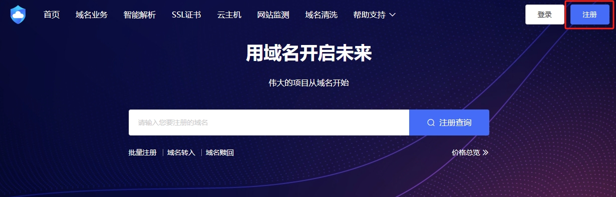 首先访问我们的主页 https://www.cloudsafe.vip , 在主页右上角点击注册按钮,如下图: