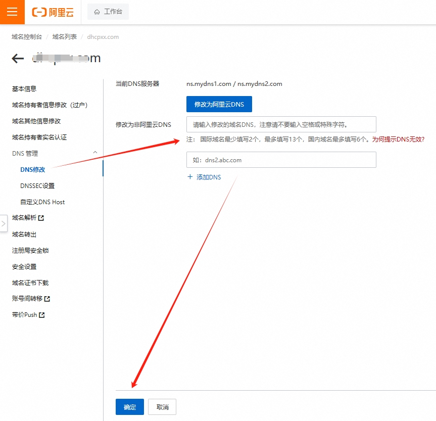 最后在页面中填写我们智能解析套餐对应的 DNS 服务器地址即可,然后点击确定,就设置成功了,如下图: